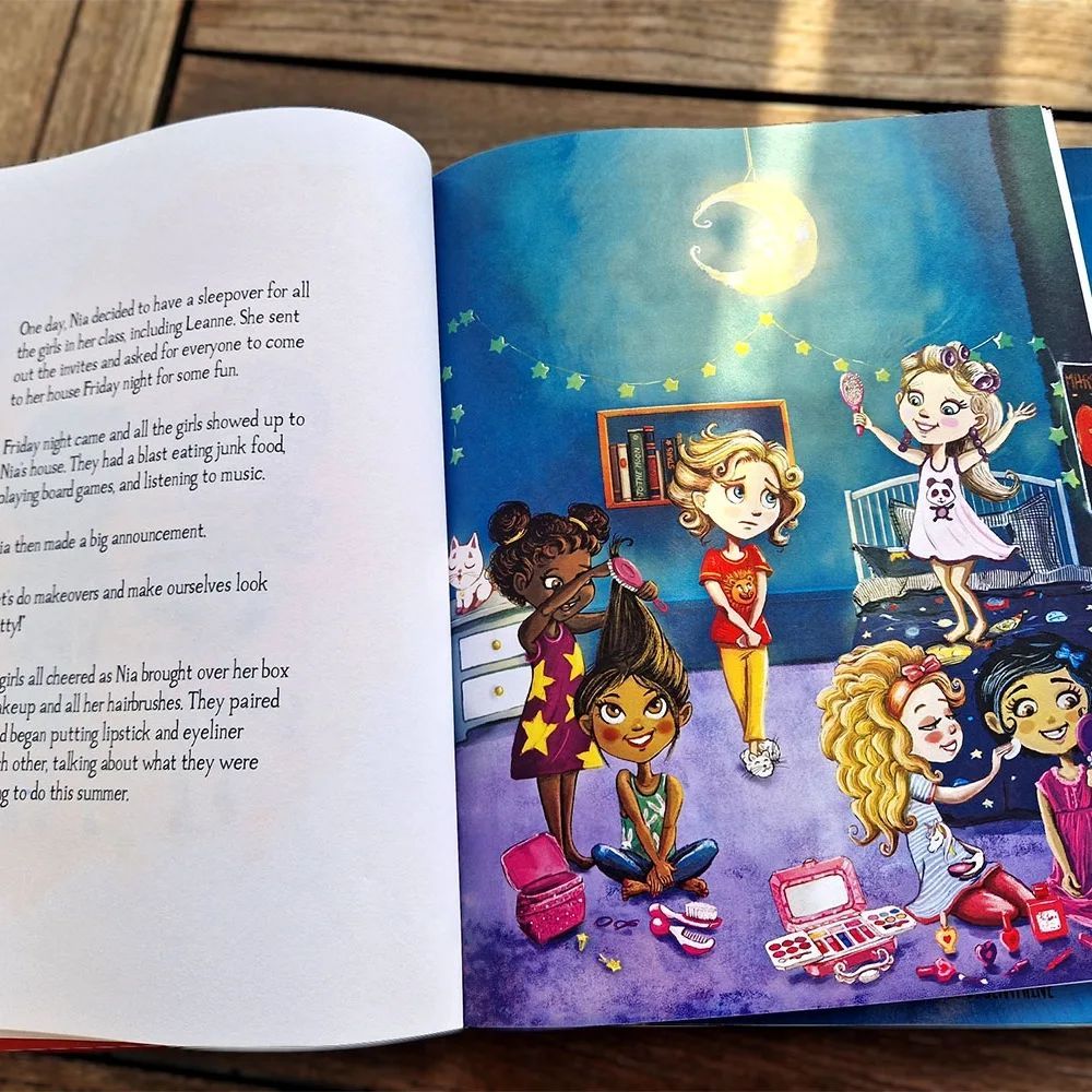 Leanne adorait porter des perruques très colorées à l’école et ses camarades de classe se réjouissaient de voir quelle perruque elle portait chaque jour. Mais ils ignoraient que sous les perruques se cachait un secret embarrassant qu'ils allaient bientôt découvrir… et Leanne va découvrir en retour que la vraie beauté vient de l’intérieur et qu’elle n’a pas à se cacher du monde. Il est disponible sous format album jeunesse classique (24 pages couleurs - Format : 21x29,7 cm) et en version numérique.