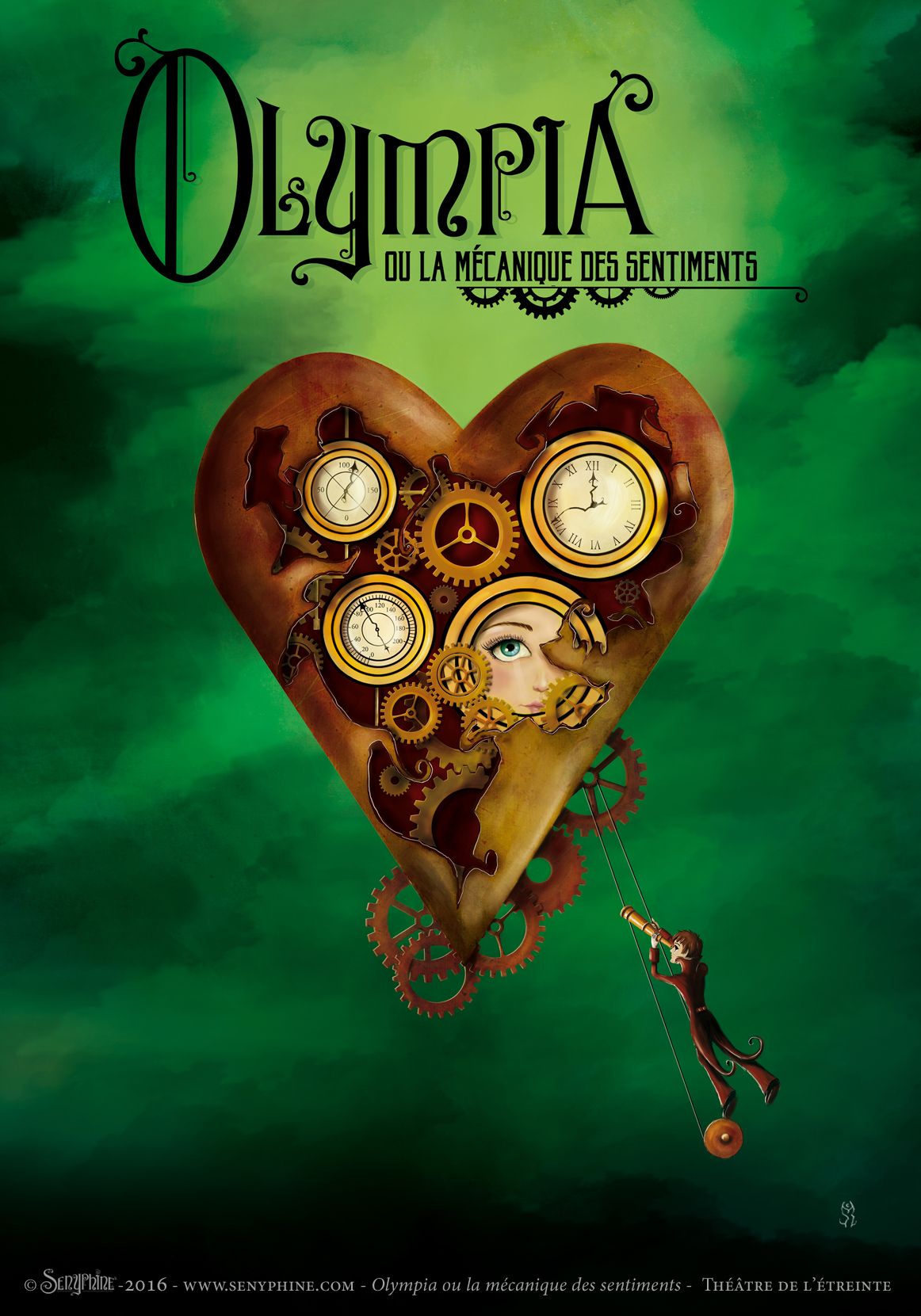 Illustration réalisée pour l'affiche du spectacle Olympia ou la mécanique des sentiments produit par le Théâtre de L’Étreinte & par la Compagnie Coincidences Vocales. Spectacle musical steampunk joué lors du Festival d'Avignon 2017 et sur Paris. Ecrit par Vanessa Callico. Mise en scène William Mesguich.