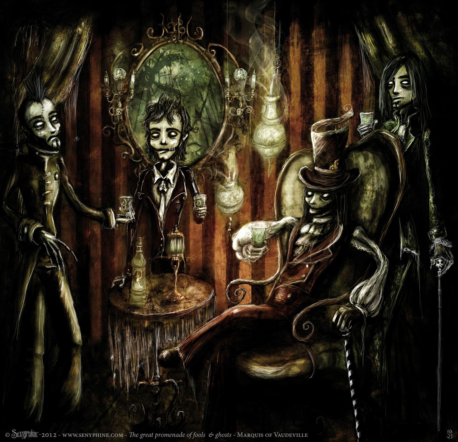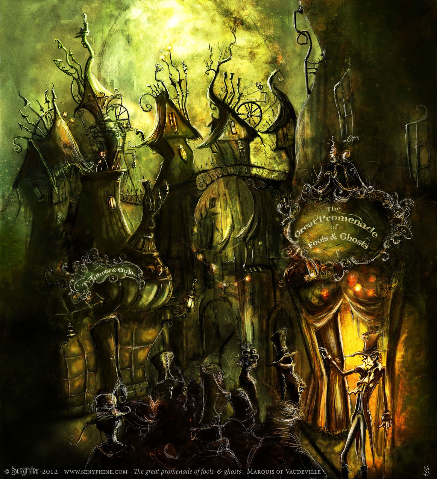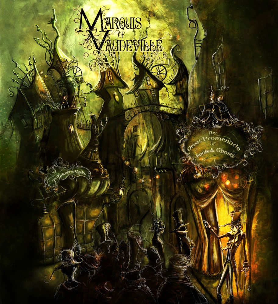 Illustration painted for the MARQUIS OF VAUDEVILLE album's cover The Great Promenade of Fools & Ghosts. An Alternative / Musical Mischief / Psychedelic PunkCabaret band from Dallas, TEXAS. I also painted the musicians for the booklet.