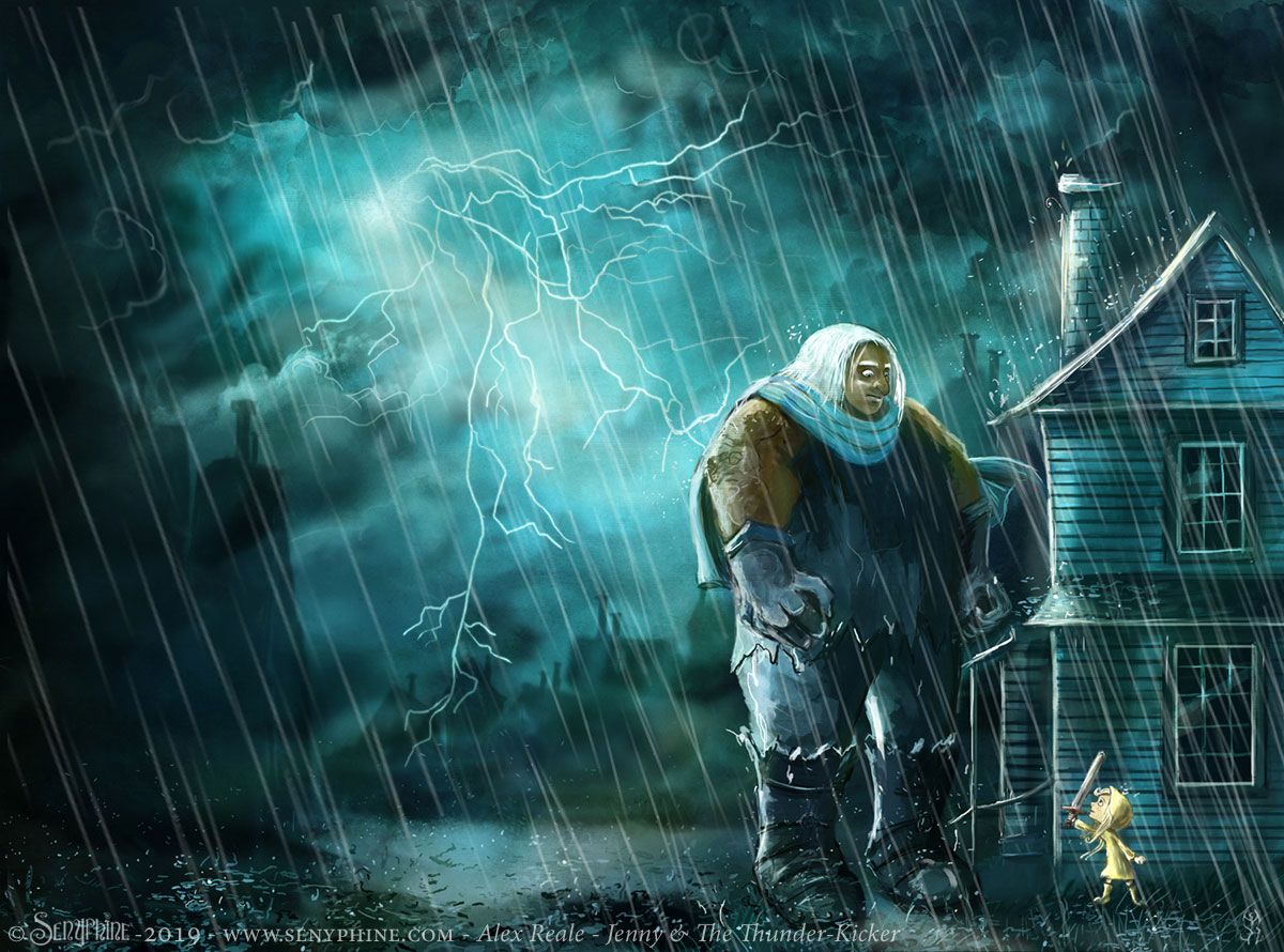 Little Jenny Spotter is afraid of thunderstorms. What kid wouldn't be? Her father tells her there's no reason to be scared - thunderstorms are caused by a race of friendly giants called Thunder-Kickers. One night, during a really bad storm, Jenny hears a loud crash outside. She discovers a Thunder-Kicker has fallen out of the sky and landed in her backyard! Jenny wants to help her new friend get back home, but she'll have to overcome her fear of the thunder to do so.
