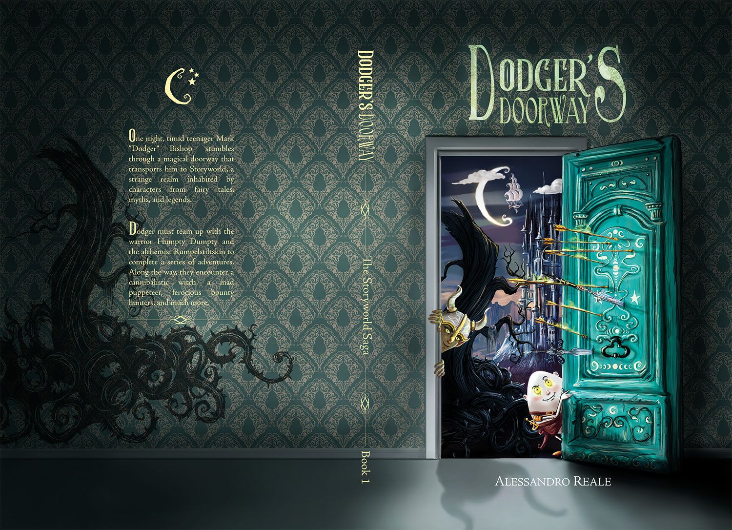 One night, timid teenager Mark “Dodger” Bishop stumbles through a magical doorway that transports him to Storyworld, a strange realm inhabited by characters from fairy tales, myths, and legends. Dodger must team up with the warrior Humpty Dumpty and the alchemist Rumpelstiltskin to complete a series of adventures. Along the way, they encounter a cannibalistic witch, a mad puppeteer, ferocious bounty hunters, and much more. *Note: There is some minor language and violence in this book.*