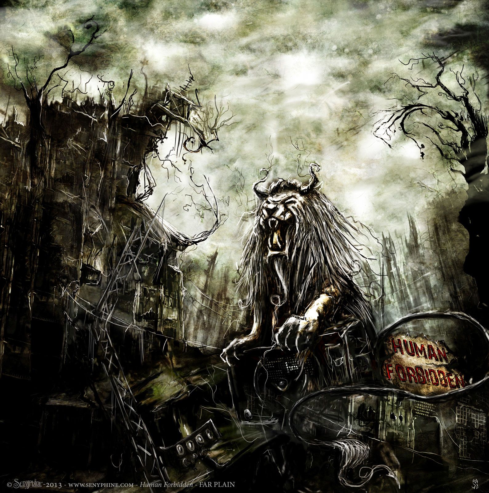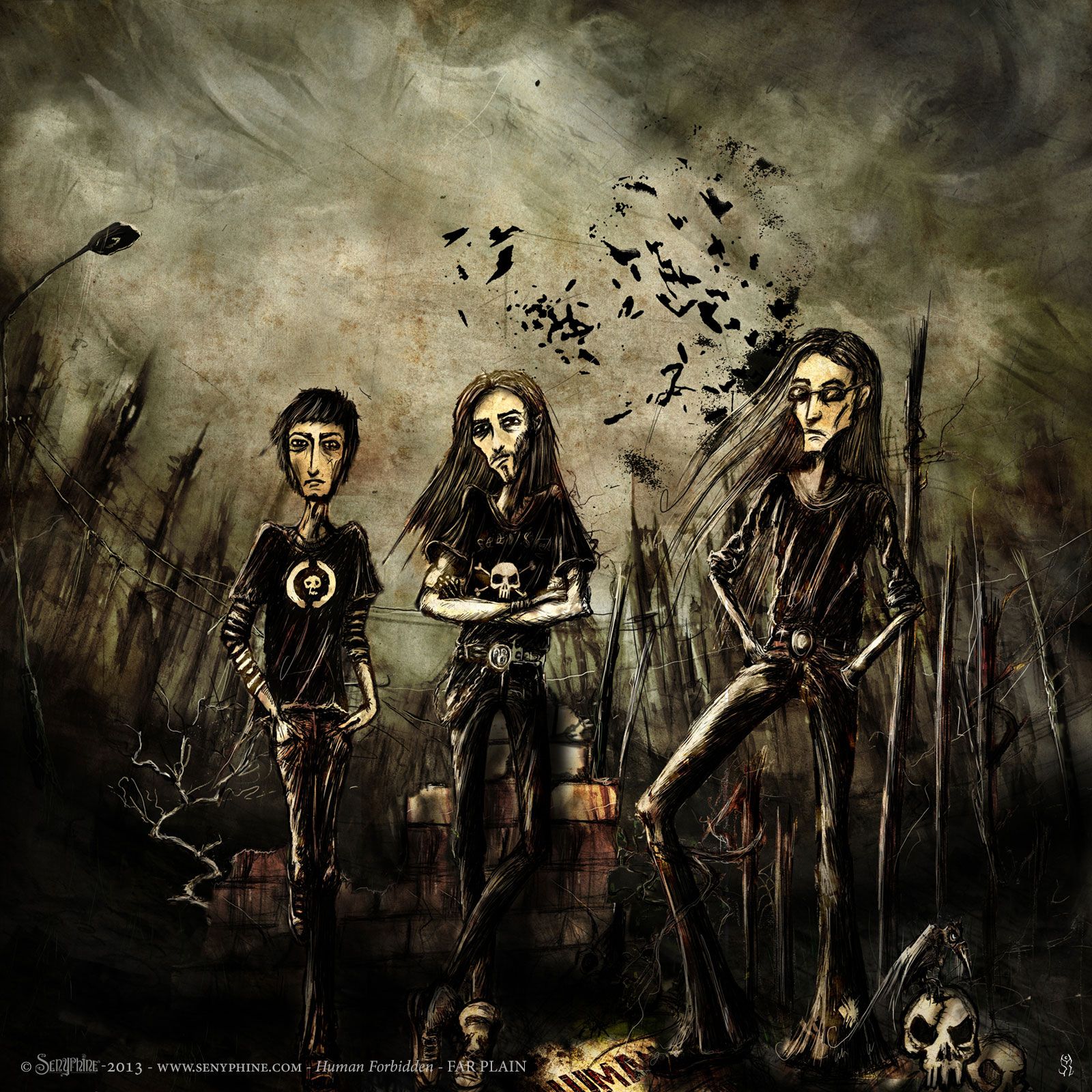 Illustration painted for the FAR PLAIN album cover's Human Forbidden a french Rock/ Grundge/ Metal band from Paris. I also drew the musicians for the booklet.