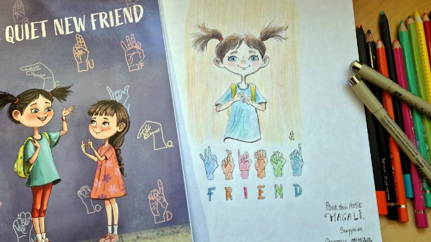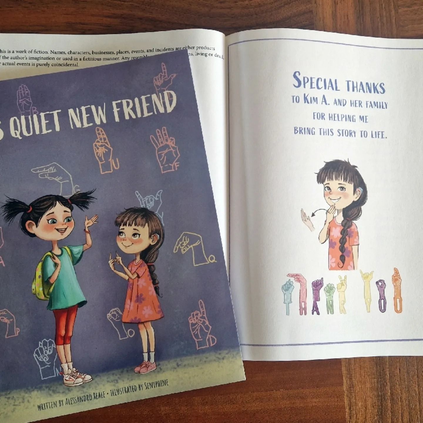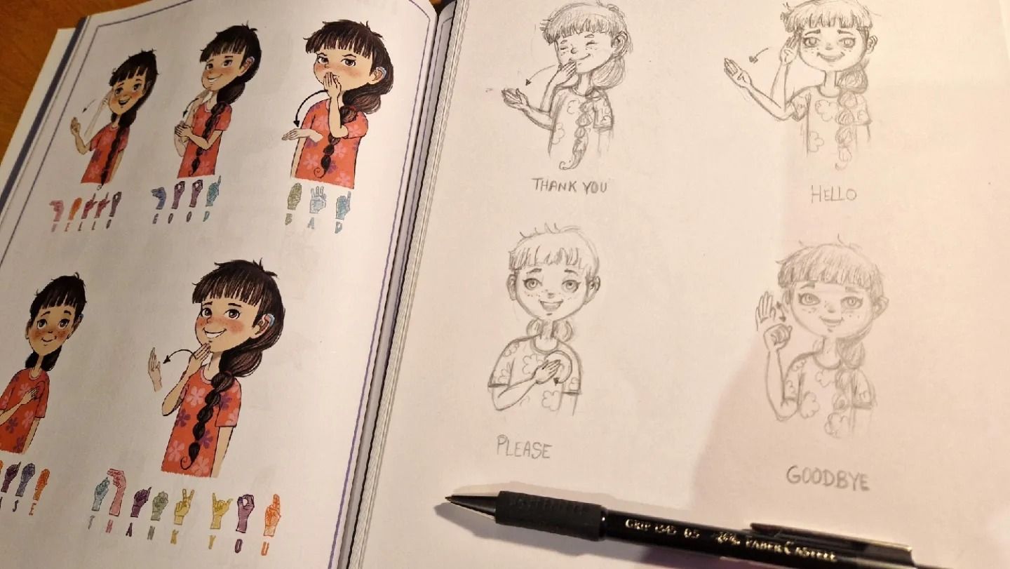 Le livre inclut des illustrations de signes de base pour aider les lecteurs à apprendre comment signer des salutations, l'alphabet, etc. et les oriente également vers des ressources supplémentaires pour apprendre l'ASL.